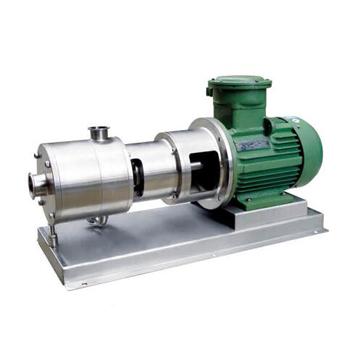 工作腔內(nèi)裝有三組定、轉(zhuǎn)子,工作腔內(nèi)傳動軸采用懸臂式,彈性聯(lián)軸器將電機與軸承箱內(nèi)的主軸聯(lián)接,提高傳動軸的運行質(zhì)量,密封形式根據(jù)不同的工況來選擇。適用于中、大批量在線連續(xù)生產(chǎn)或循環(huán)處理生產(chǎn)工藝。